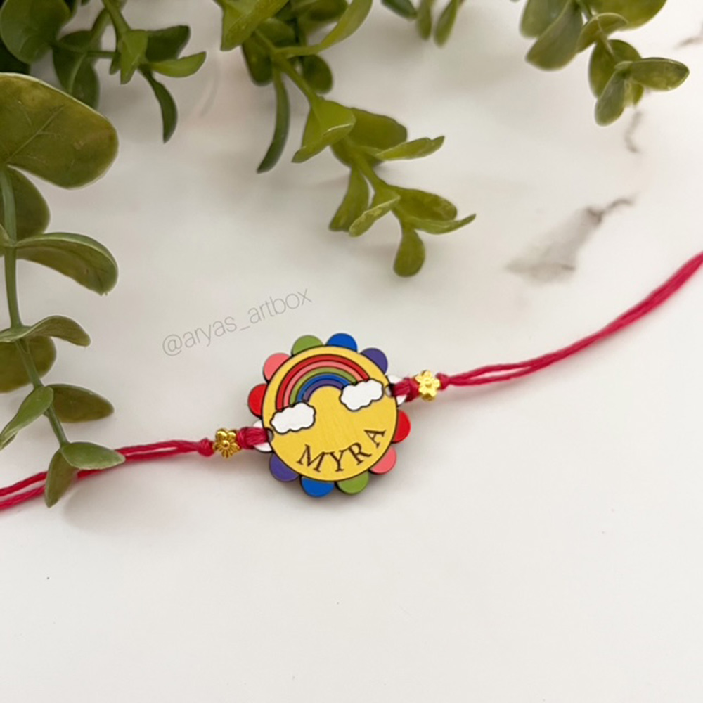 - Rakhis are painted on a wooden base and are about the size of a quarter coin. We cut, paint and design each and every rakhi with utmost love and care.