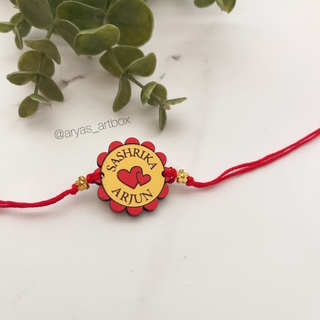 • Rakhis are painted on a wooden base and are about the size of a quarter coin. We cut, paint and design each and every rakhi with utmost love and care.