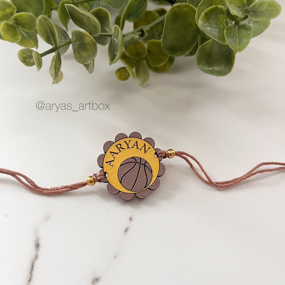 - Rakhis are painted on a wooden base and are about the size of a quarter coin. We cut, paint and design each and every rakhi with utmost love and care.