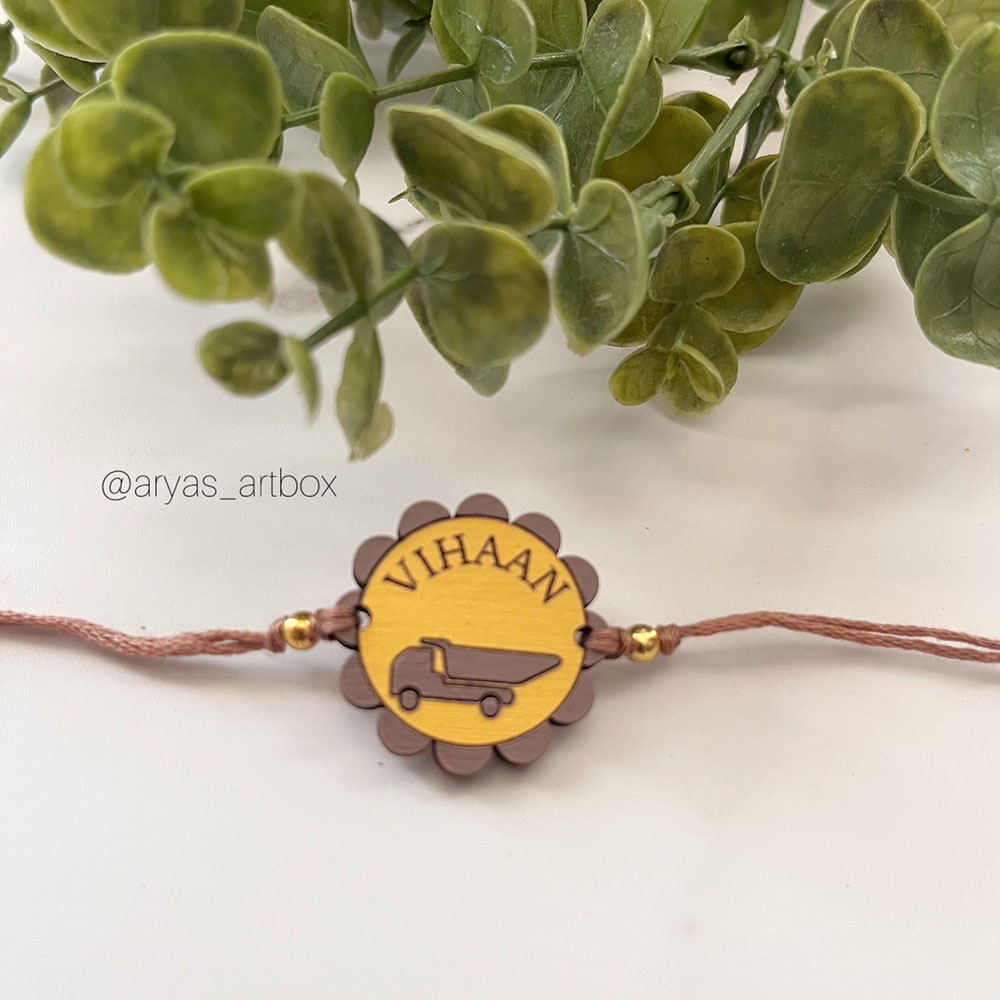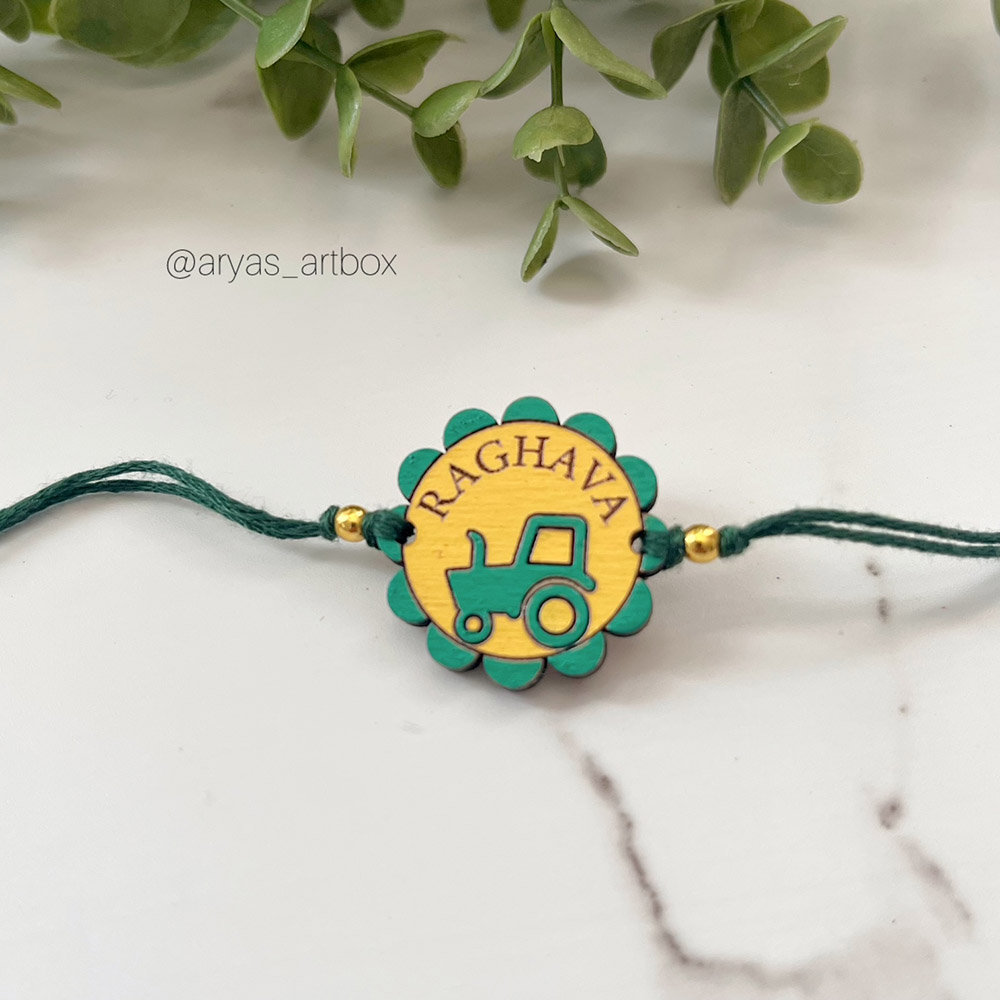 - Rakhis are painted on a wooden base and are about the size of a quarter coin. We cut, paint and design each and every rakhi with utmost love and care.
